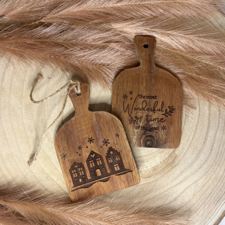 Borrelplank teakhout gegraveerd met de tekst: Geniet, meer niet!