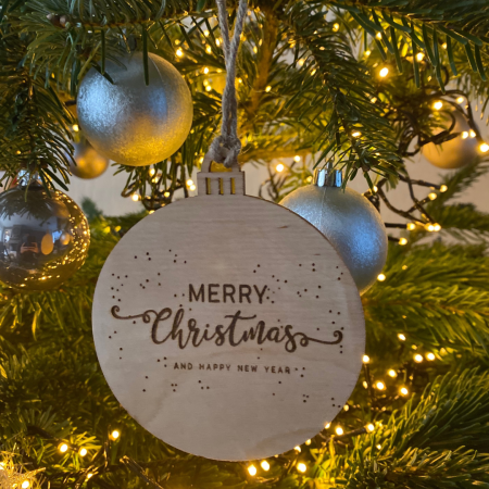 Kerstbalhanger gegraveerd met Naam uit berkenhout
