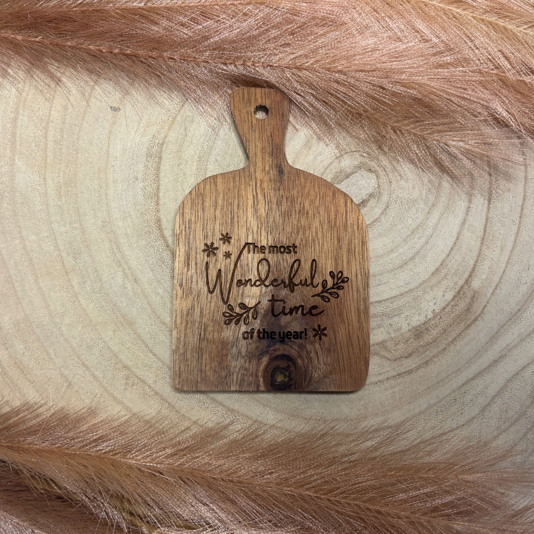 Mini borrelplank gegraveerd met de tekst: The most wonderful time of the year!