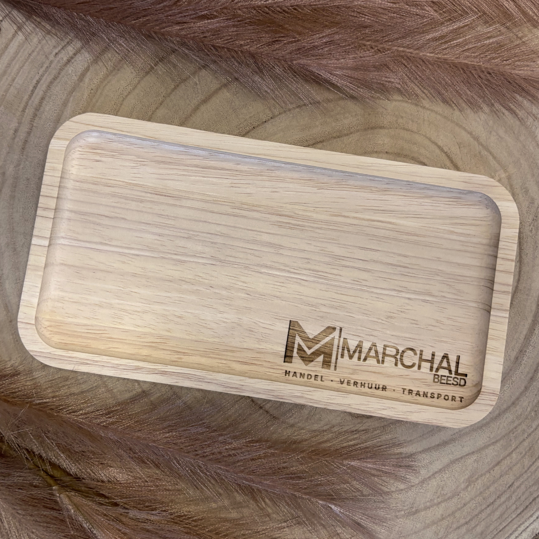 Een heel mooi relatiegeschenk. Een snackplankje gegraveerd met logo. Doe er een kopje koffie met een koekje bij en hoe leuk is het om weg te geven of te gebruiken in je bedrijf. Of maak er een borrelplankje van met kaas en worst.